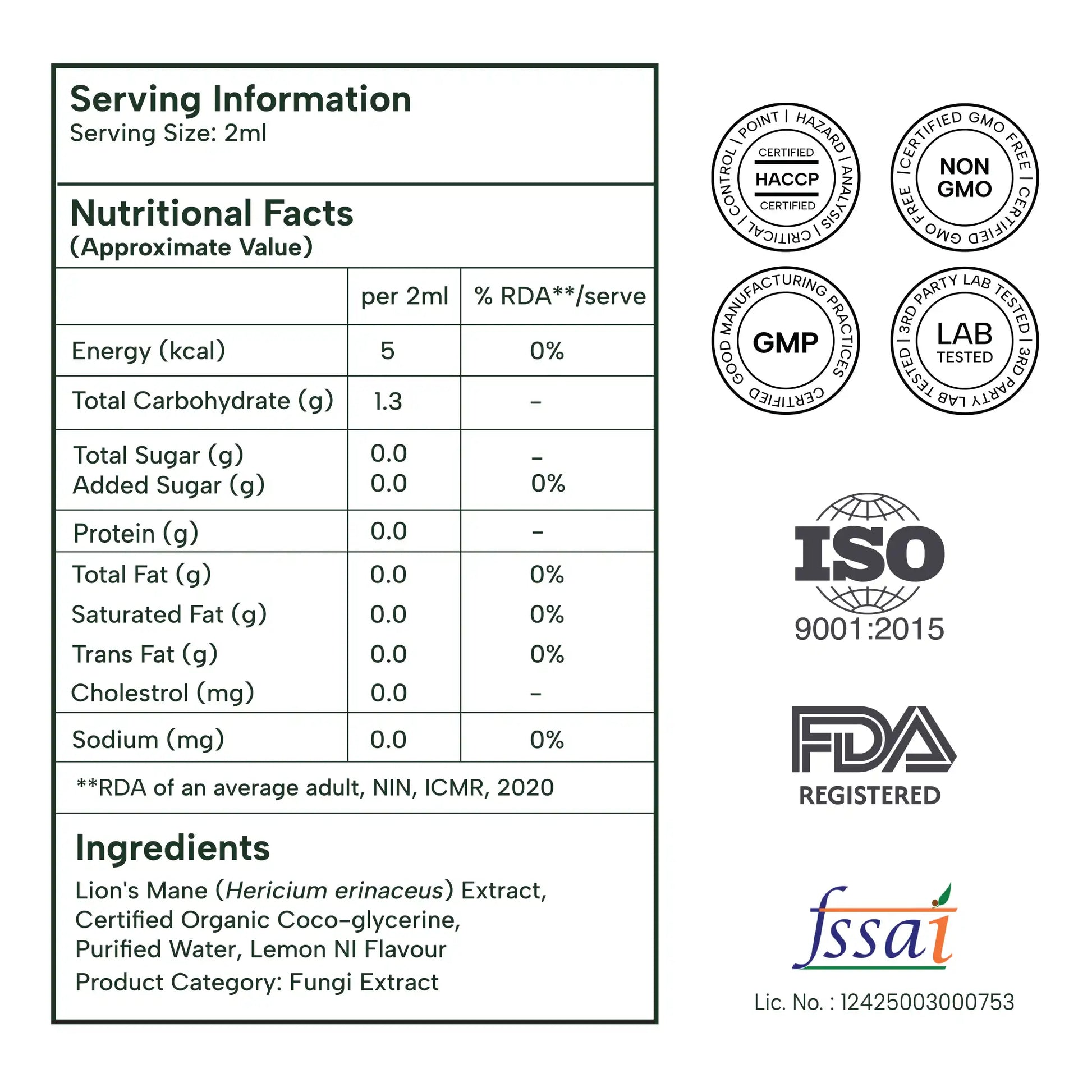 Lion's Mane (Hericium erinaceus) Extract,