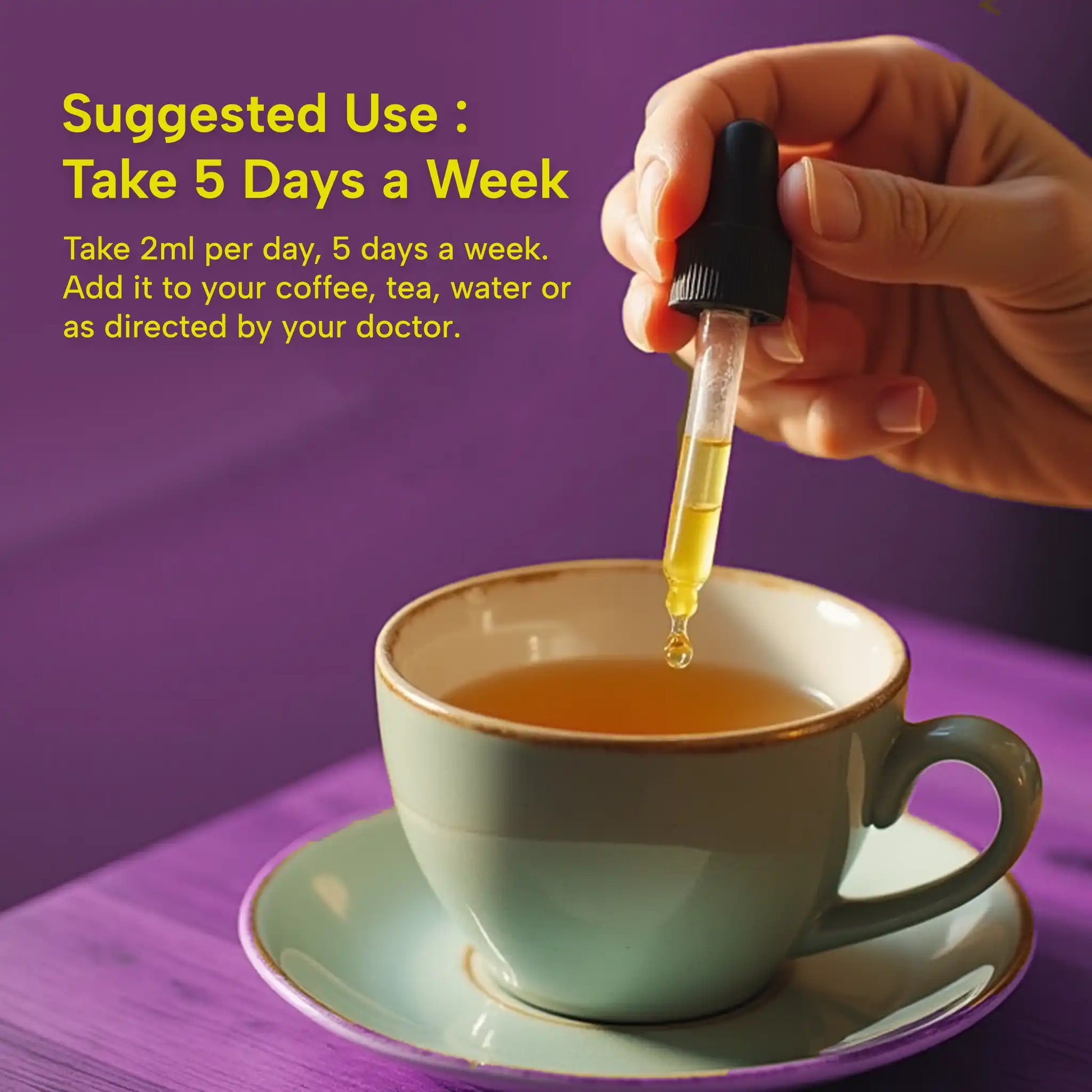 Take 2ml per day, 5 days a week.